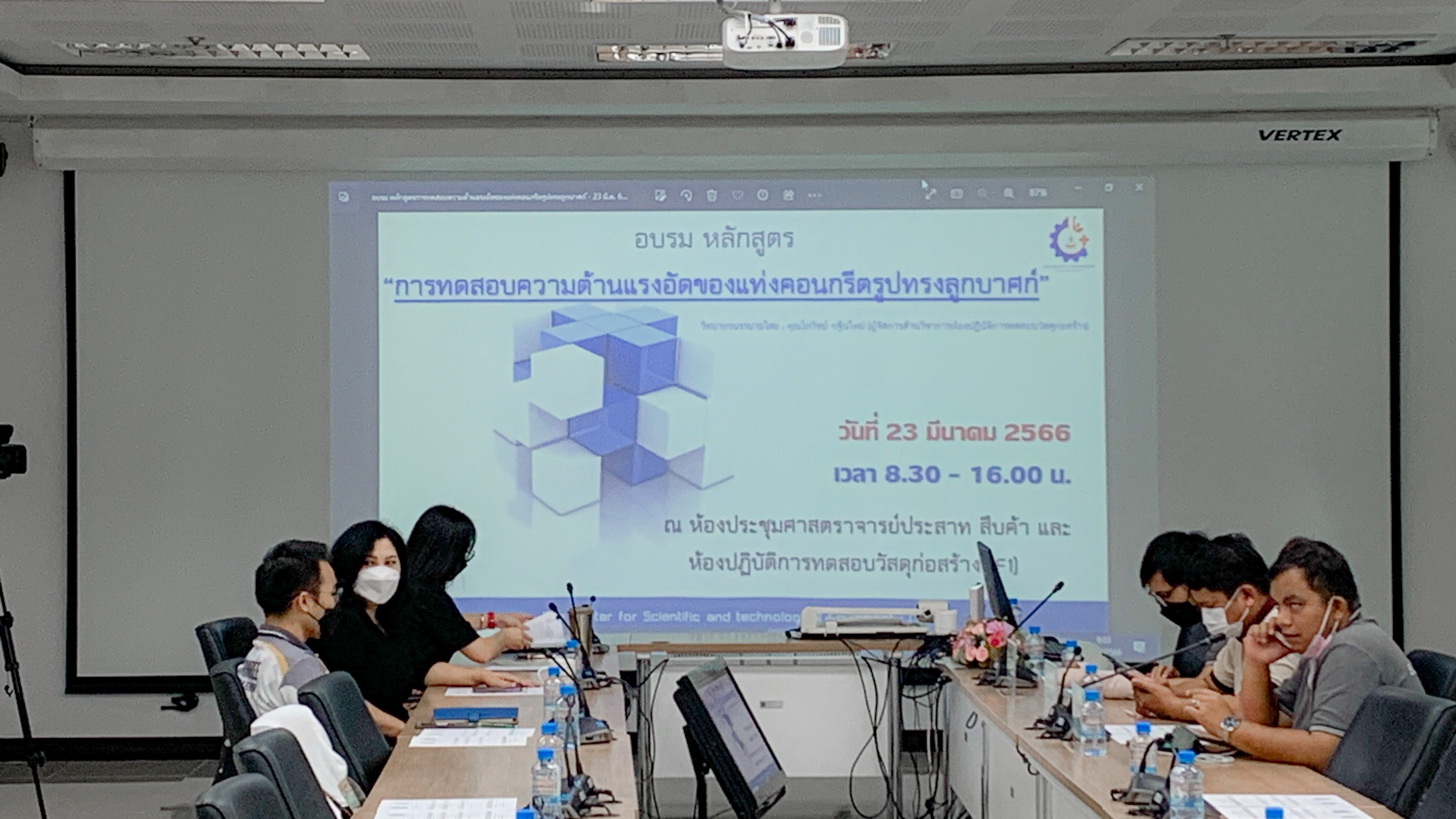 ฝ่ายวิเคราะห์ด้วยเครื่องมือ ศูนย์เครื่องมือวิทยาศาสตร์และเทคโนโลยี มหาวิทยาลัยเทคโนโลยีสุรนารี ได้ดำเนินการจัดกิจกรรมอบรมหลักสูตร : "การทดสอบความต้านแรงอัดของแท่งคอนกรีตรูปทรงลูกบาศก์"