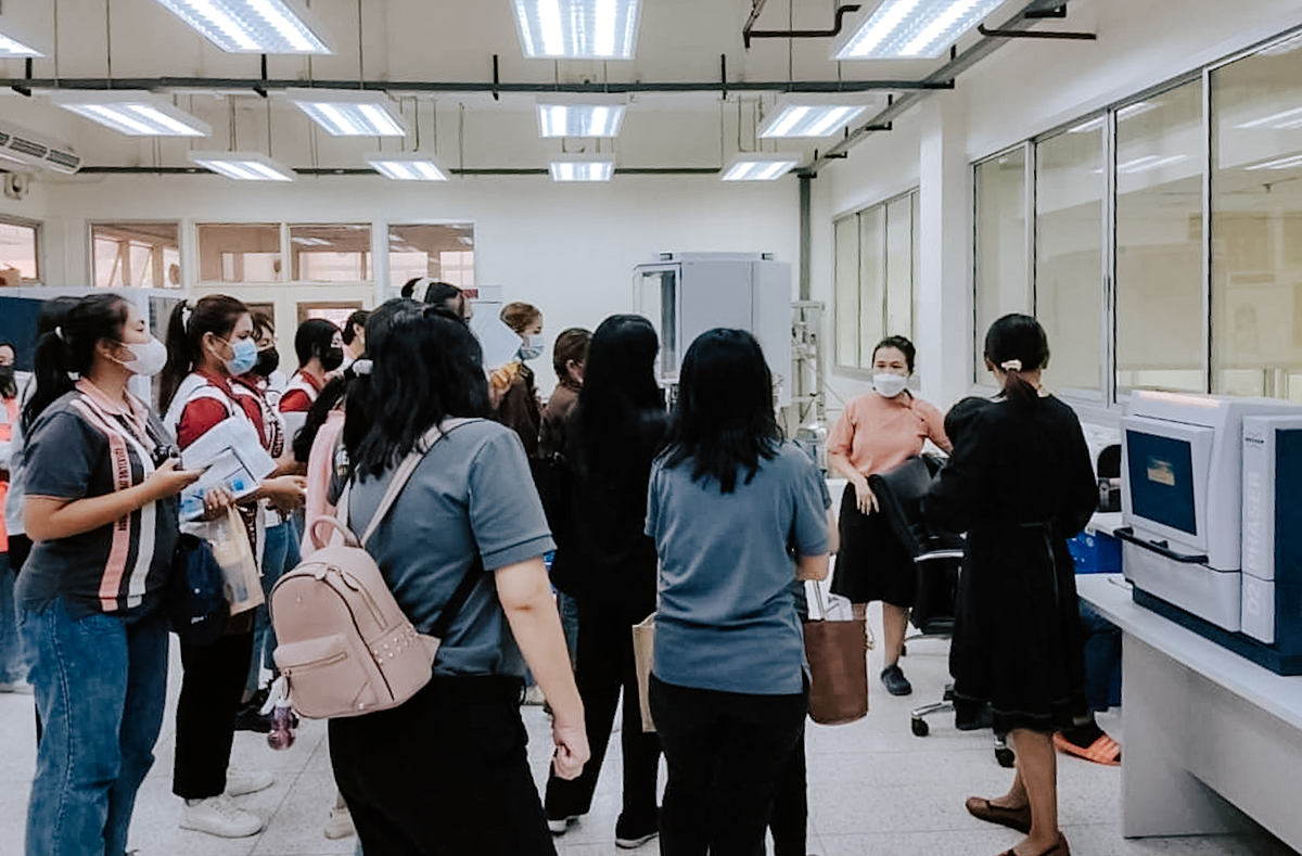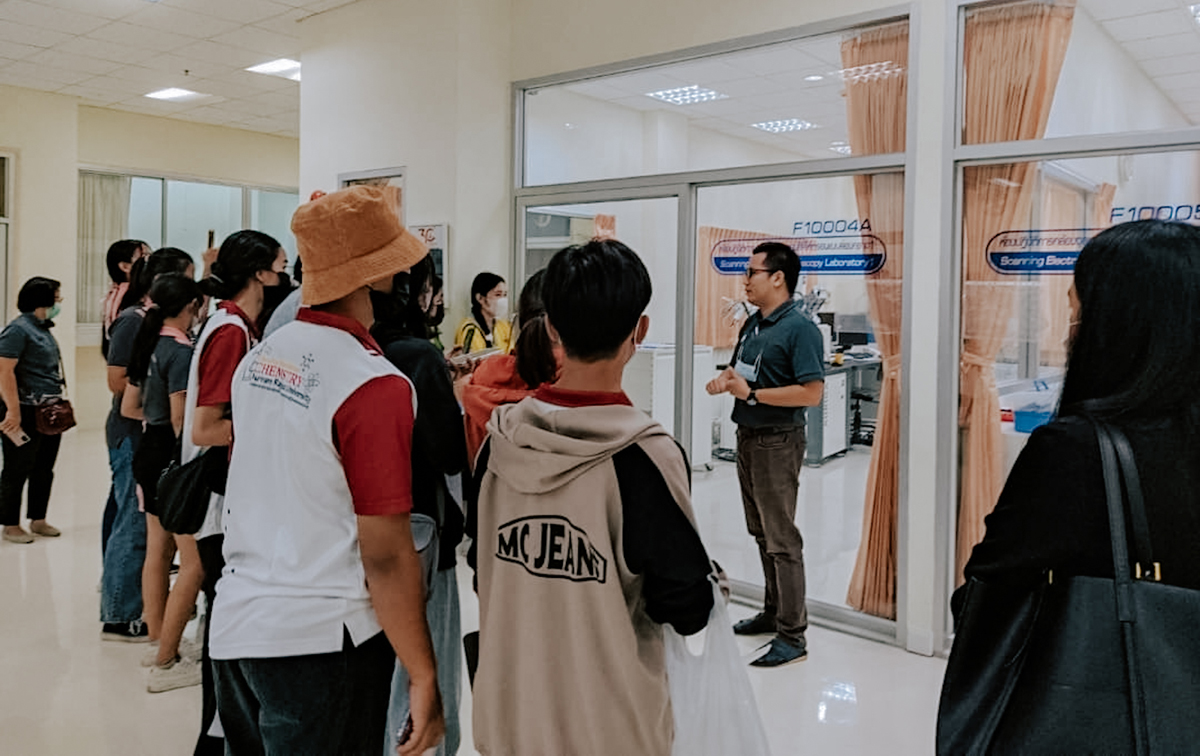ในการนี้ คุณจรรจิรา วงศ์วิวัฒนา (หัวหน้างานวิเคราะห์ทางเคมีและชีวเคมี) และคุณเกวลี พร้อมพิพัฒนพร (หัวหน้างานวิเคราะห์ทางกล้องจุลทรรศน์อิเล็กตรอน) พร้อมเจ้าหน้าที่ที่เกี่ยวข้องได้ให้การต้อนรับ และนำเยี่ยมชมห้องปฏิบัติการดังนี้