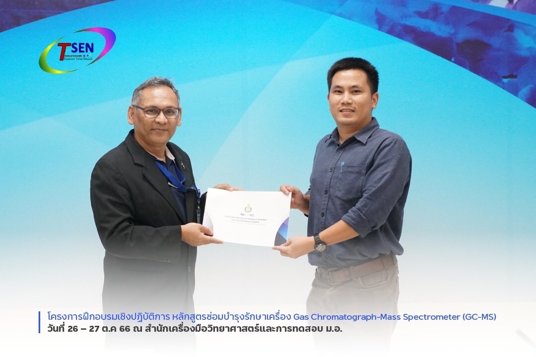เครือข่ายศูนย์เครื่องมือวิทยาศาสตร์แห่งประเทศไทย (TSEN) ได้เปิดการอบรม โครงการฝึกอบรมเชิงปฏิบัติการซ่อมบำรุงรักษาเครื่อง Gas Chromatograph Mass Spectrometry (GC-MS) เมื่อวันที่ 26-27 ตุลาคม 2566 ณ ห้องประชุม 102 และห้อง G08/2 ชั้น G สำนักเครื่องมือวิทยาศาสตร์และการทดสอบ มหาวิทยาสงขลานครินทร์ วิทยาเขตหาดใหญ่ จังหวัดสงขลา