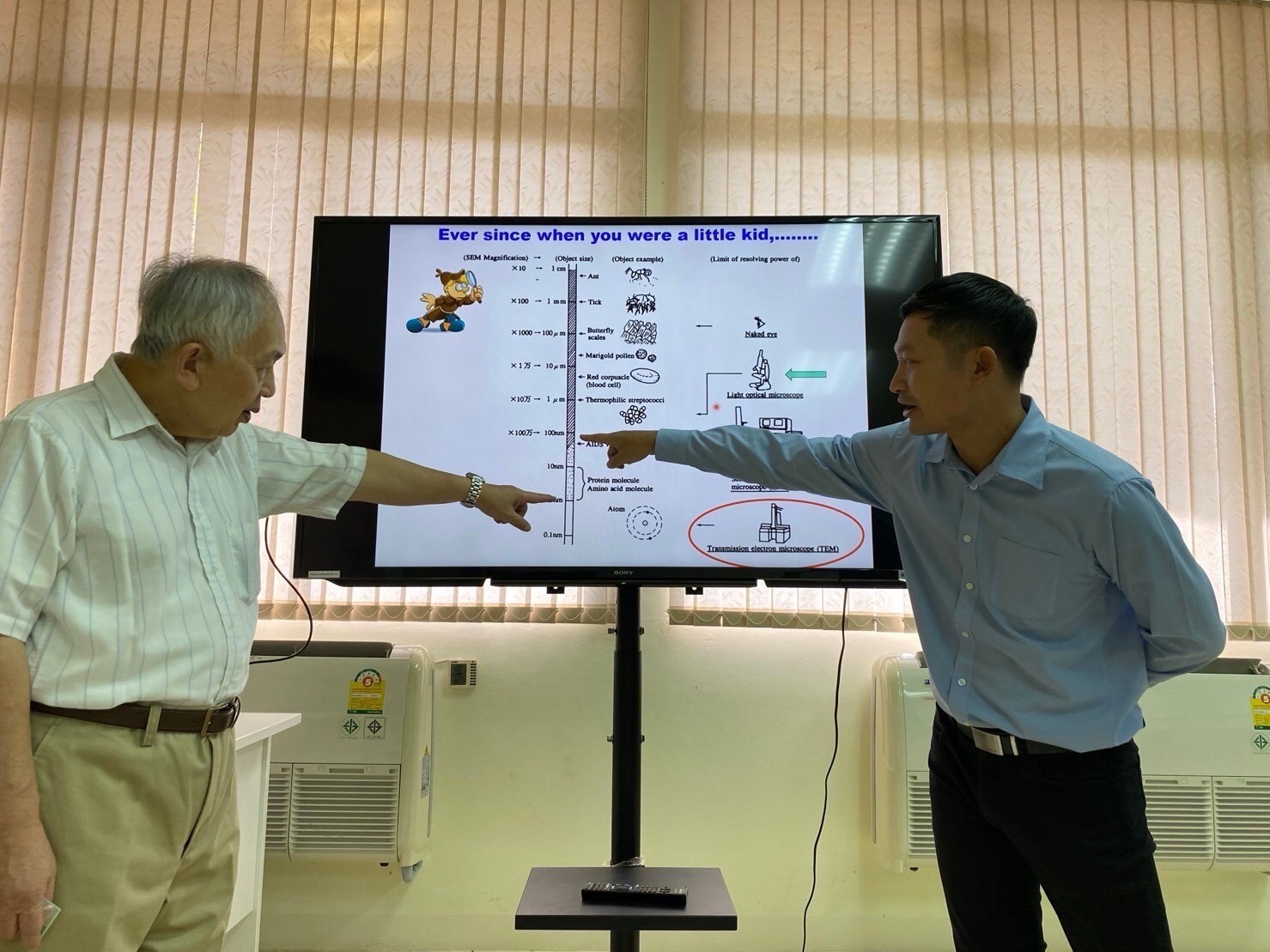 ในการนี้ เจ้าหน้าที่ประจำงานวิเคราะห์ทางกล้องจุลทรรศน์อิเล็กตรอน พร้อมเจ้าหน้าที่ที่เกี่ยวข้องได้ให้การต้อนรับและนำเยี่ยมชมห้องปฏิบัติการห้องปฏิบัติการวิเคราะห์ทางกล้องจุลทรรศน์อิเล็กตรอน (SEM, TEM, Confocal, AFM) ICP-MS, AAS, IC)