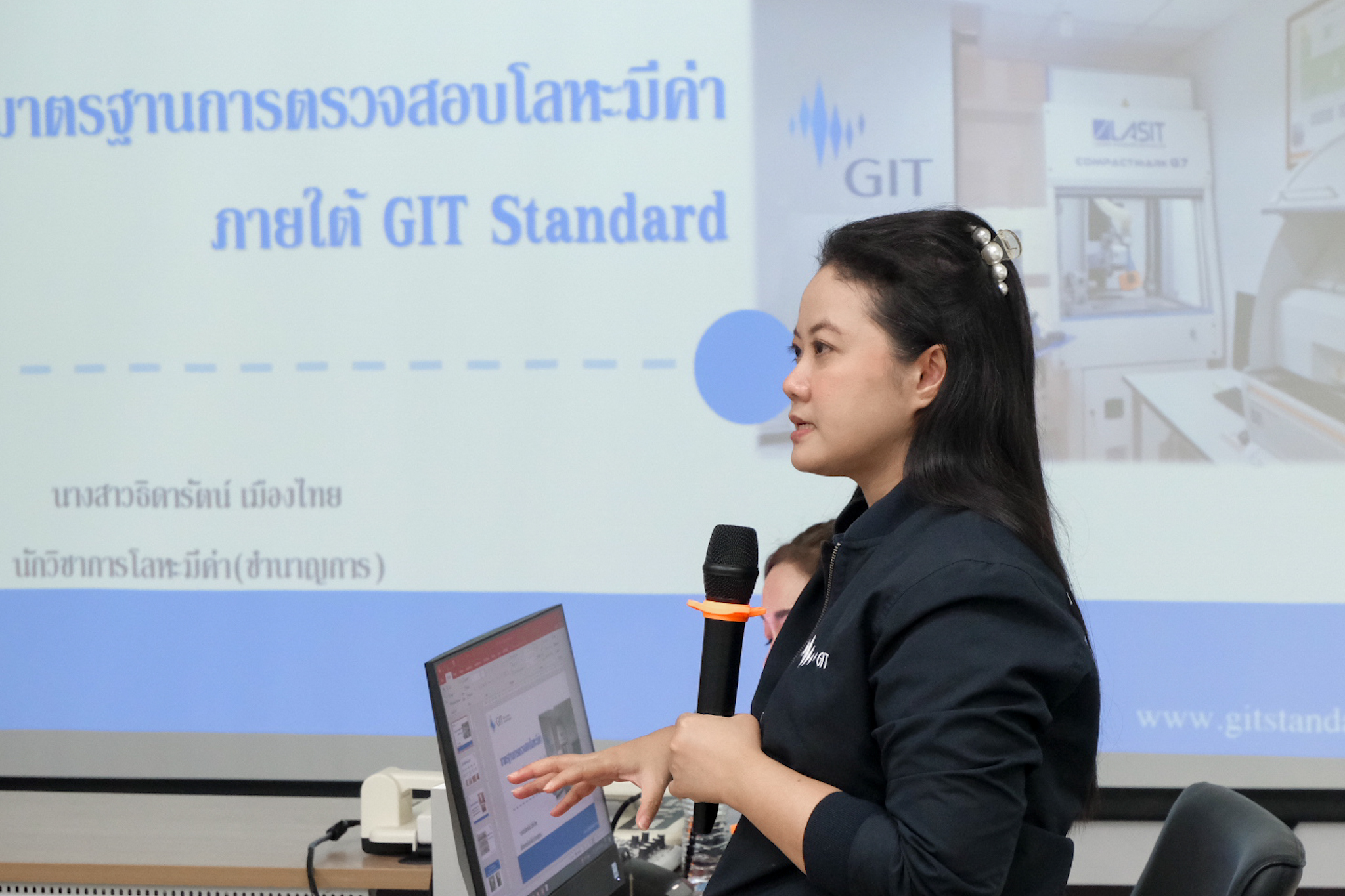 และได้รับเกียรติจากวิทยากรบรรยาย คุณวาสนา แววศรี และ คุณธิดารัตน์ เมืองไทย นักวิชาการโลหะมีค่า (ชำนาญการ) จากสถาบันวิจัยอัญมณีและเครื่องประดับแห่งชาติ (องค์การมหาชน) ให้ความรู้ในเรื่องการประเมินทองคำเบื้องต้น แนวโน้มของทองคำในตลาด การหาปริมาณทองคำ มาตรฐานของทองคำและโลหะมีค่า หลักการในการใช้เทคนิค XRF และ Method Validation, การหาค่า Uncertainty