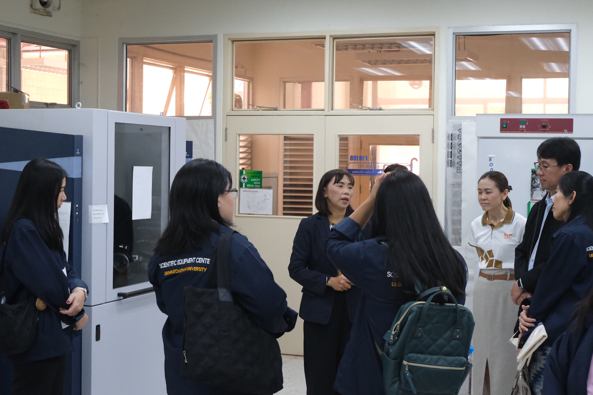 ทั้งนี้คณะได้เยี่ยมชมห้องปฏิบัติการและแลกเปลี่ยนความคิดเห็นในประเด็นการจัดการห้องปฏิบัติการ การให้บริการแก่นักศึกษา/บุคลากร เพื่อใช้ประโยชน์ในการจัดการเรียนการสอน วิจัย และกิจกรรมอื่น ๆ โดยกิจกรรมดำเนินไปด้วยความเรียบร้อย