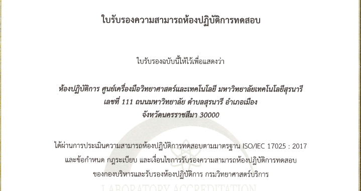 --------------- ใบรับรองความสามารถห้องปฏิบัติการทดสอบ ---------------