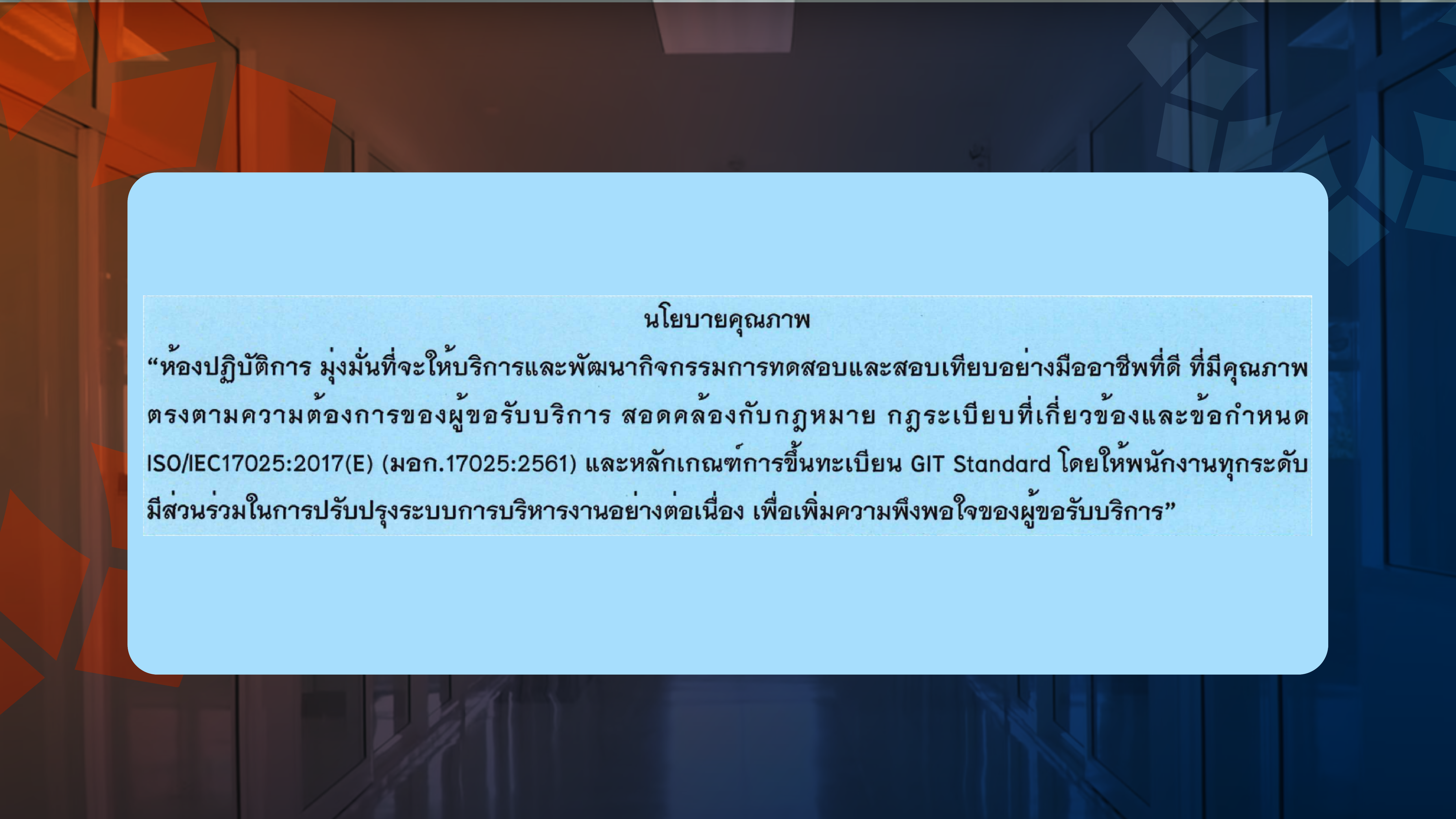 นโยบายคุณภาพห้องปฏิบัติการ ศูนย์เครื่องมือวิทยาศาสตร์และเทคโนโลยี