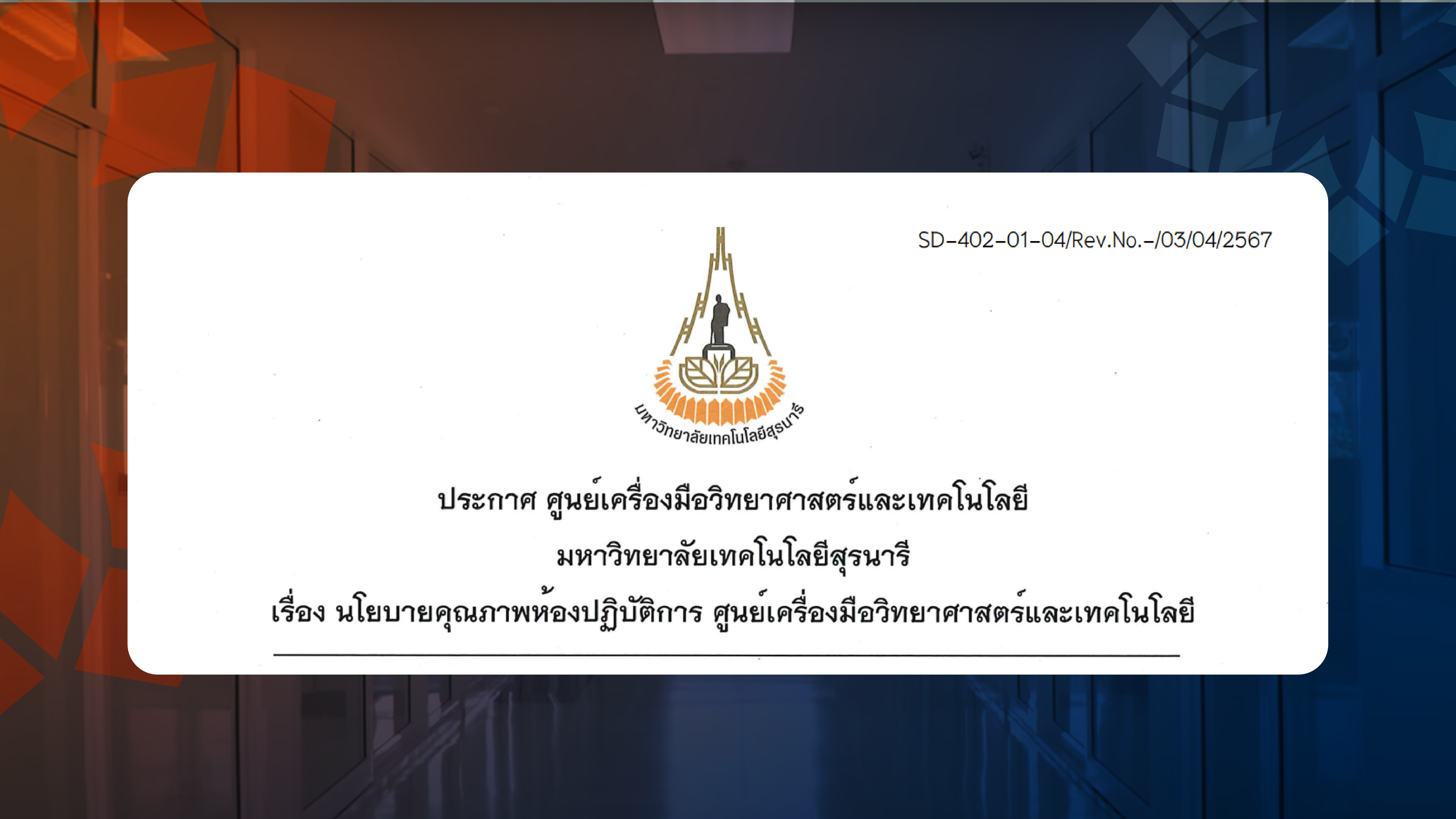 cr. งานระบบคุณภาพห้องปฏิบัติการ #ฝ่ายวิเคราะห์ด้วยเครื่องมือ #ศูนย์เครื่องมือวิทยาศาสตร์และเทคโนโลยี #มหาวิทยาลัยเทคโนโลยีสุรนารี