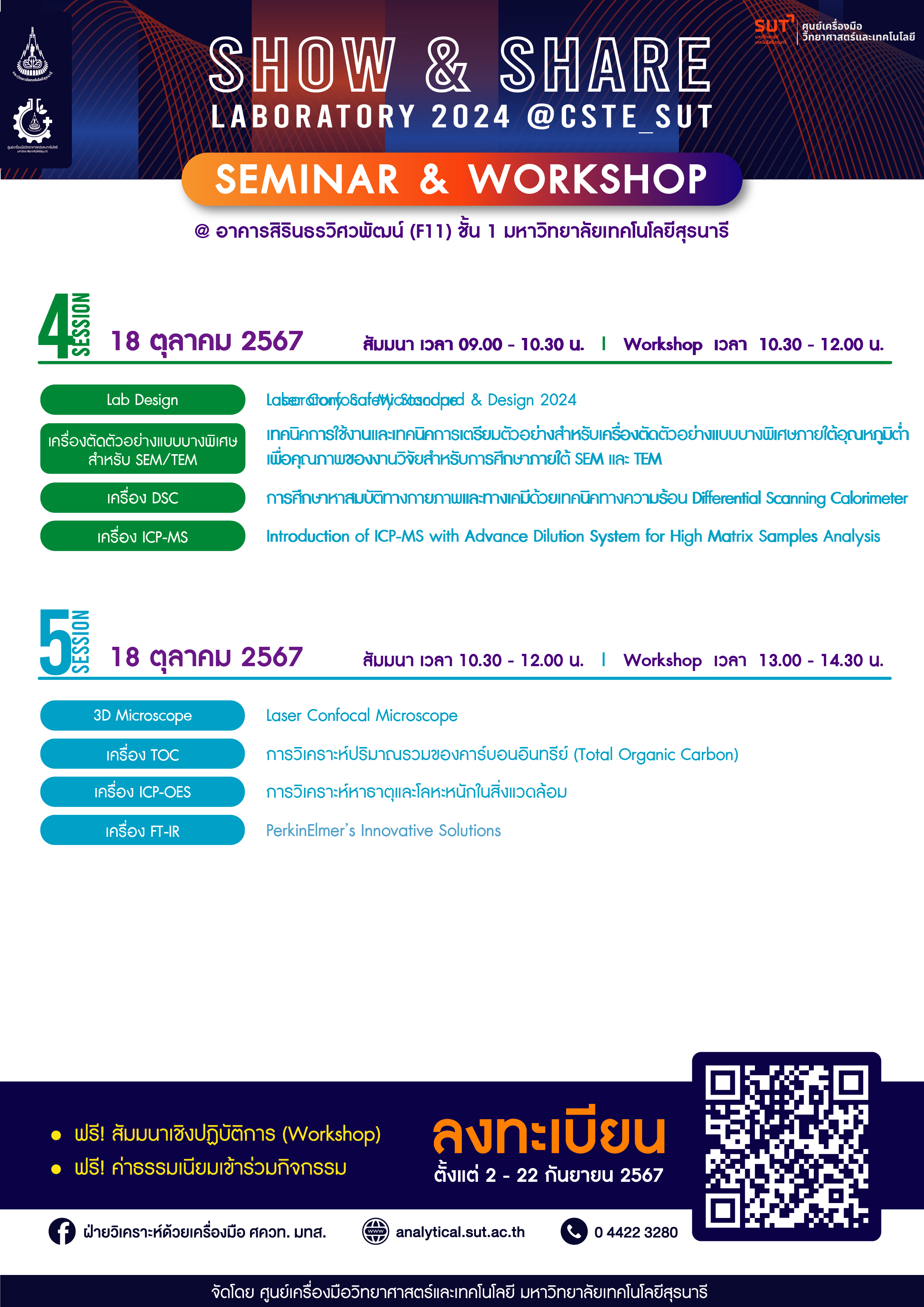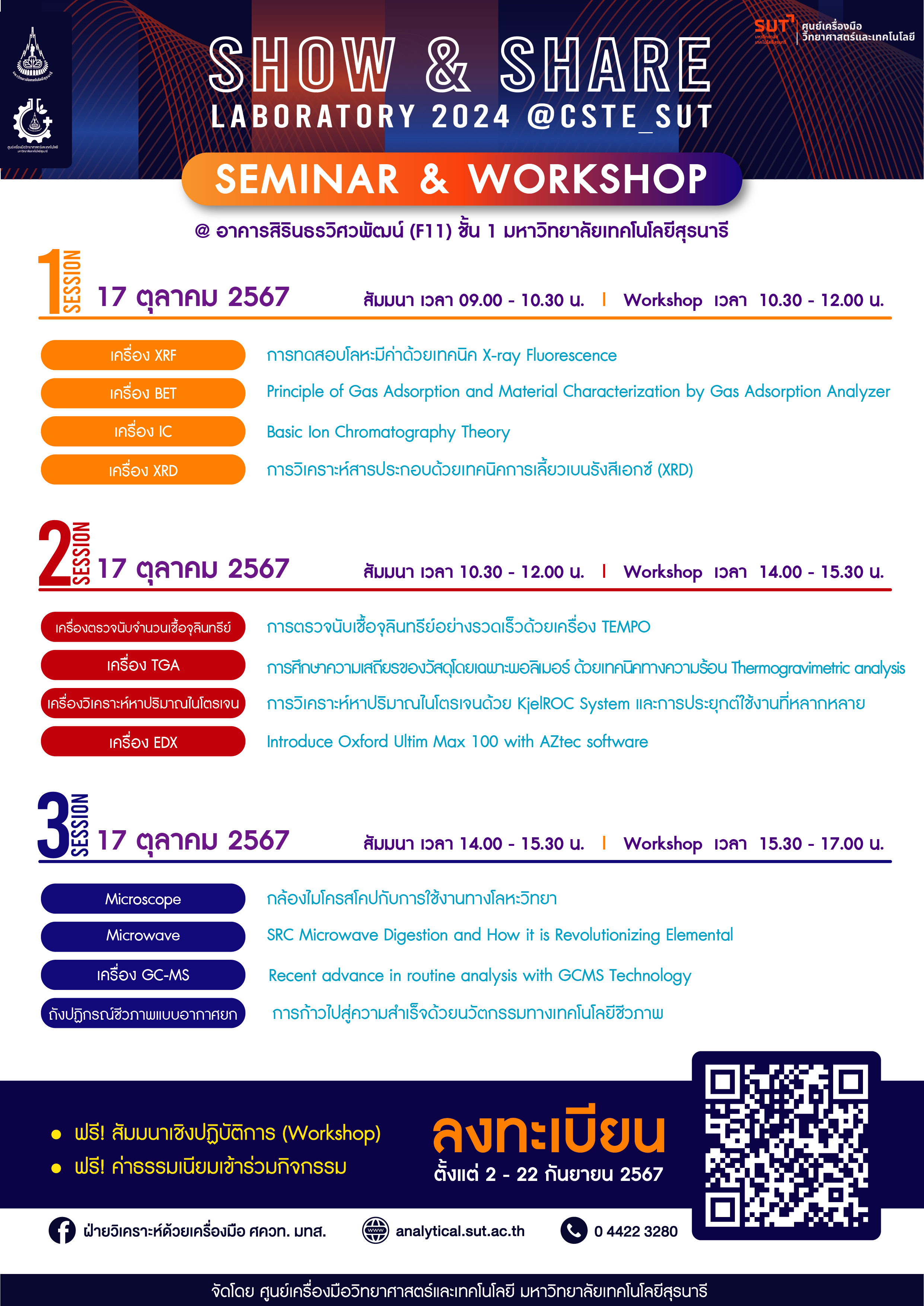 อ่านรายละเอียดและลงทะเบียนสัมมนาได้ที่ https://analytical.sut.ac.th/shownshare2024/