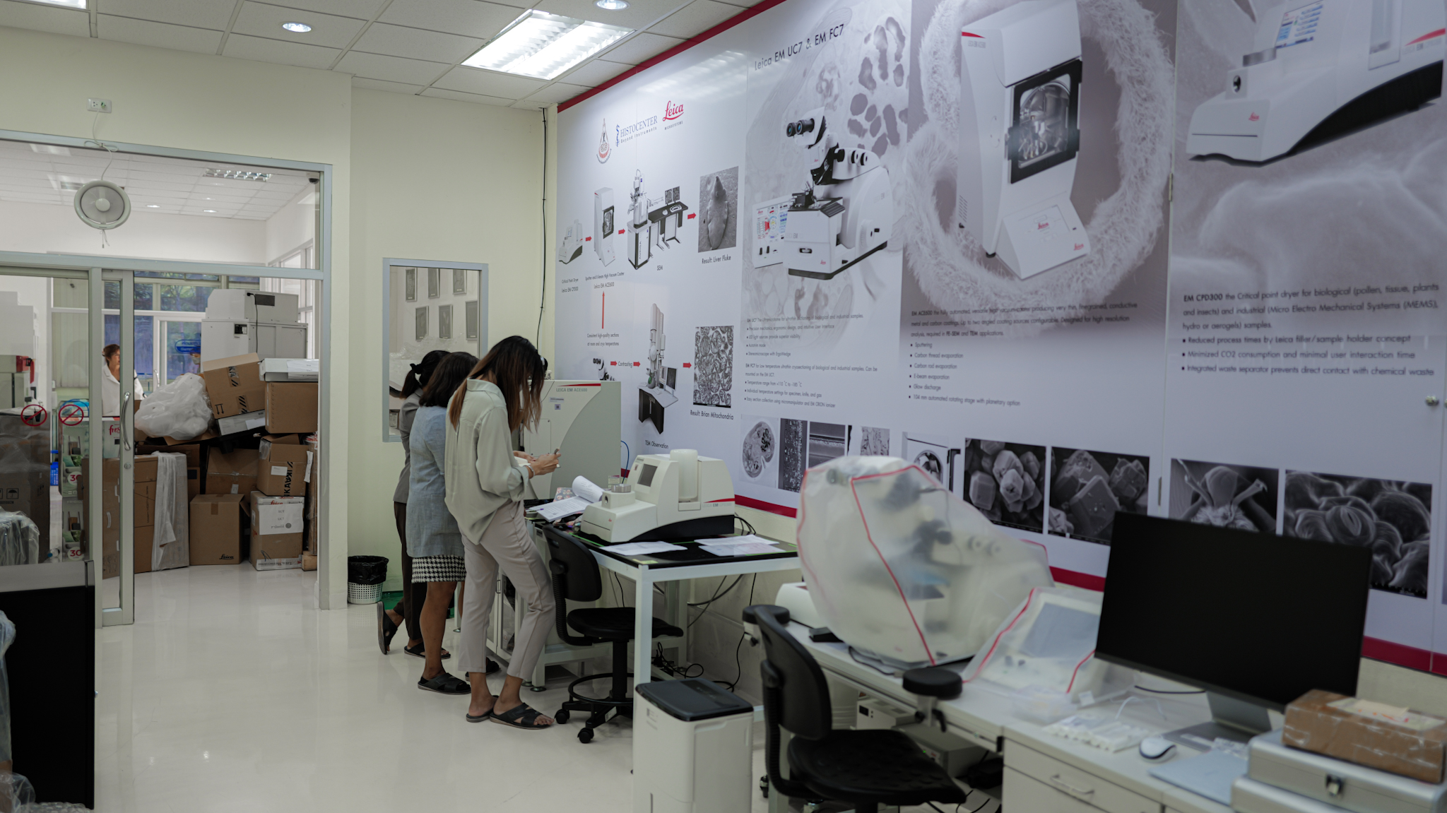 หัวหน้าฝ่ายวิเคราะห์นักวิทยาศาสตร์และเจ้าหน้าที่ประจำห้องปฏิบัติการวิเคราะห์ด้วยกล้องจุลทรรศน์อิเล็กตรอน #ฝ่ายวิเคราะห์ด้วยเครื่องมือ ได้ตรวจรับเครื่องมือใหม่และติดตั้ง "เครื่องตัดตัวอย่างแบบบางพิเศษภายใต้อุณหภูมิห้อง และอุณหภูมิต่ำ" ยี่ห้อ Leica รุ่น EM FC7 และรุ่น EM UC7 พร้อมอุปกรณ์ประกอบ รวมทั้งการอบรมการใช้เครื่องมือจากผู้เชี่ยวชาญจากบริษัทผู้จำหน่ายเครื่องมือฯ วันที่ 18 กันยายน 2567 ณ อาคารเครื่องมือ 10