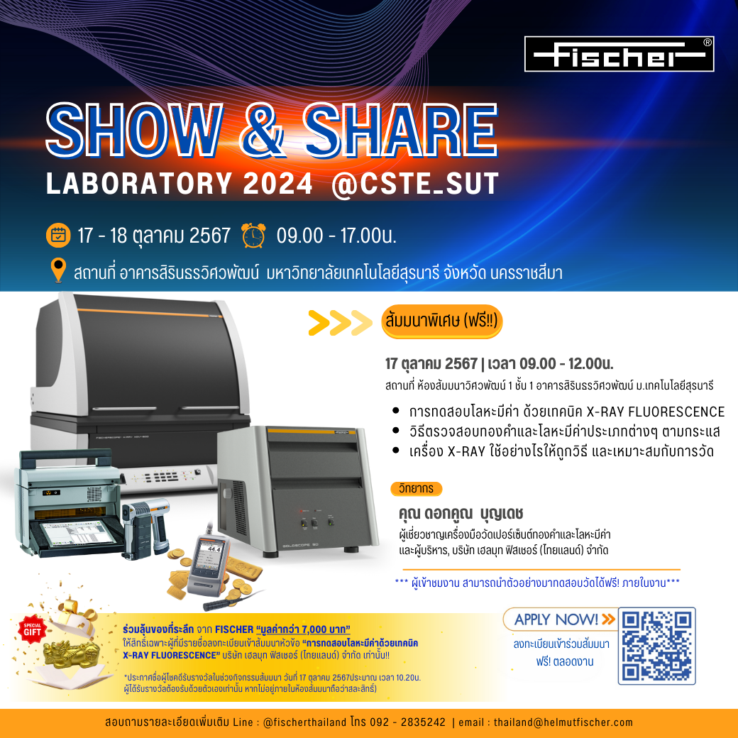 ในงาน Show & Share Laboratory 2024 @ CSTE-SUT ณ อาคารสิรินธรวิศวพัฒน์ มหาวิทยาลัยเทคโนโลยีสุรนารี พร้อมการทดสอบจริง!! ด้วยเครื่อง X-Ray ทั้งแบบตั้งโต๊ะและแบบพกพา