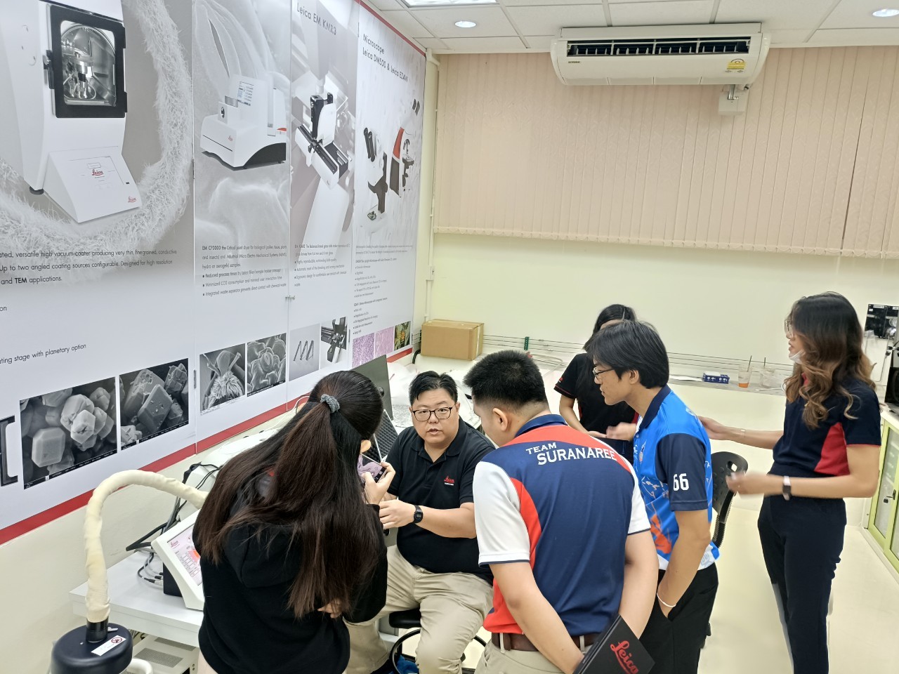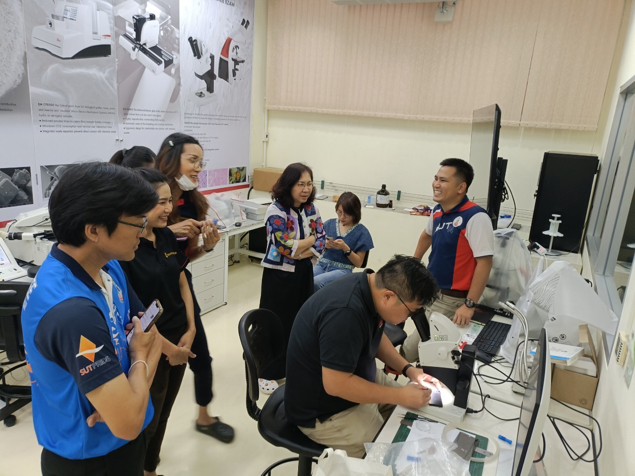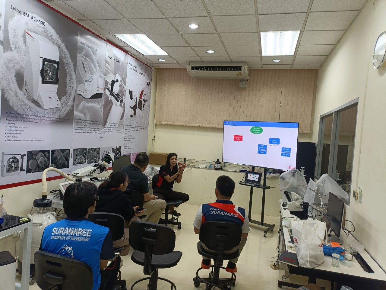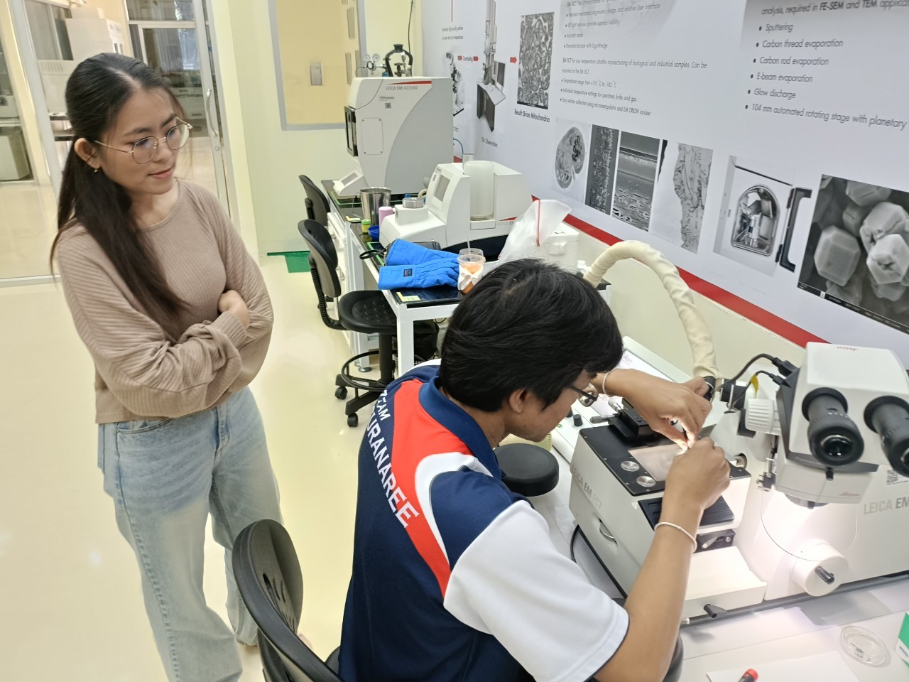 งานวิเคราะห์ด้วยกล้อวจุลทรรศน์อิเล็กตรอน ฝ่ายวิเคราะห์ด้วยเครื่องมือ ศควท. อบรมการใช้เครื่องตัดตัวอย่างแบบบางพิเศษ สำหรับงาน TEM/SEM ยี่ห้อ LEICA รุ่น EM FC7 + UC 7 โดยวิทยากรพิเศษ ดร.วิภาวี ถึงเสียบญวน กับ Dr.Adrian Boey Applications Specialist Micoscope ผู้เชี่ยวชาญการใช้เครื่องตัดตัวอย่างแบบบางพิเศษ จากบริษัท Leica Microsystems (SEA) Pte., Ltd. ประเทศ Singapore ระหว่างวันที่ 19-21 พฤศจิกายน 2567 ณ ห้องปฏิบัติการวิเคราะห์ด้วยกล้องจุลทรรศน์อิเล็กตรอน อาคารเครื่องมือ 10 มหาวิทยาลัยเทคโนโลยีสุรนารี