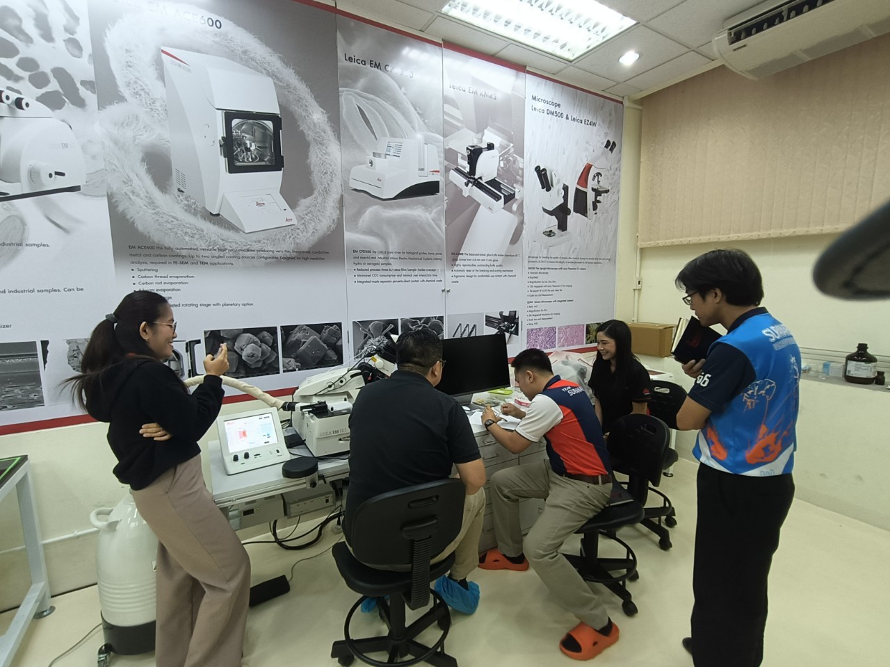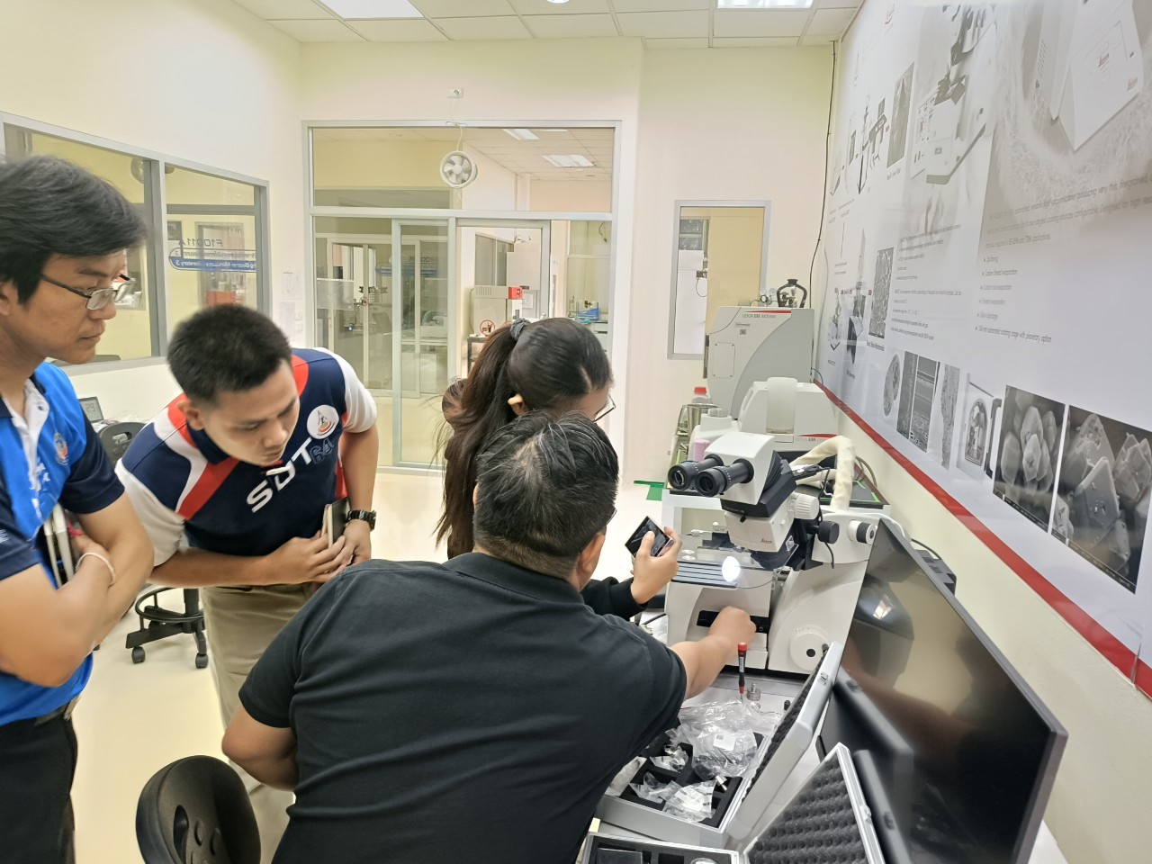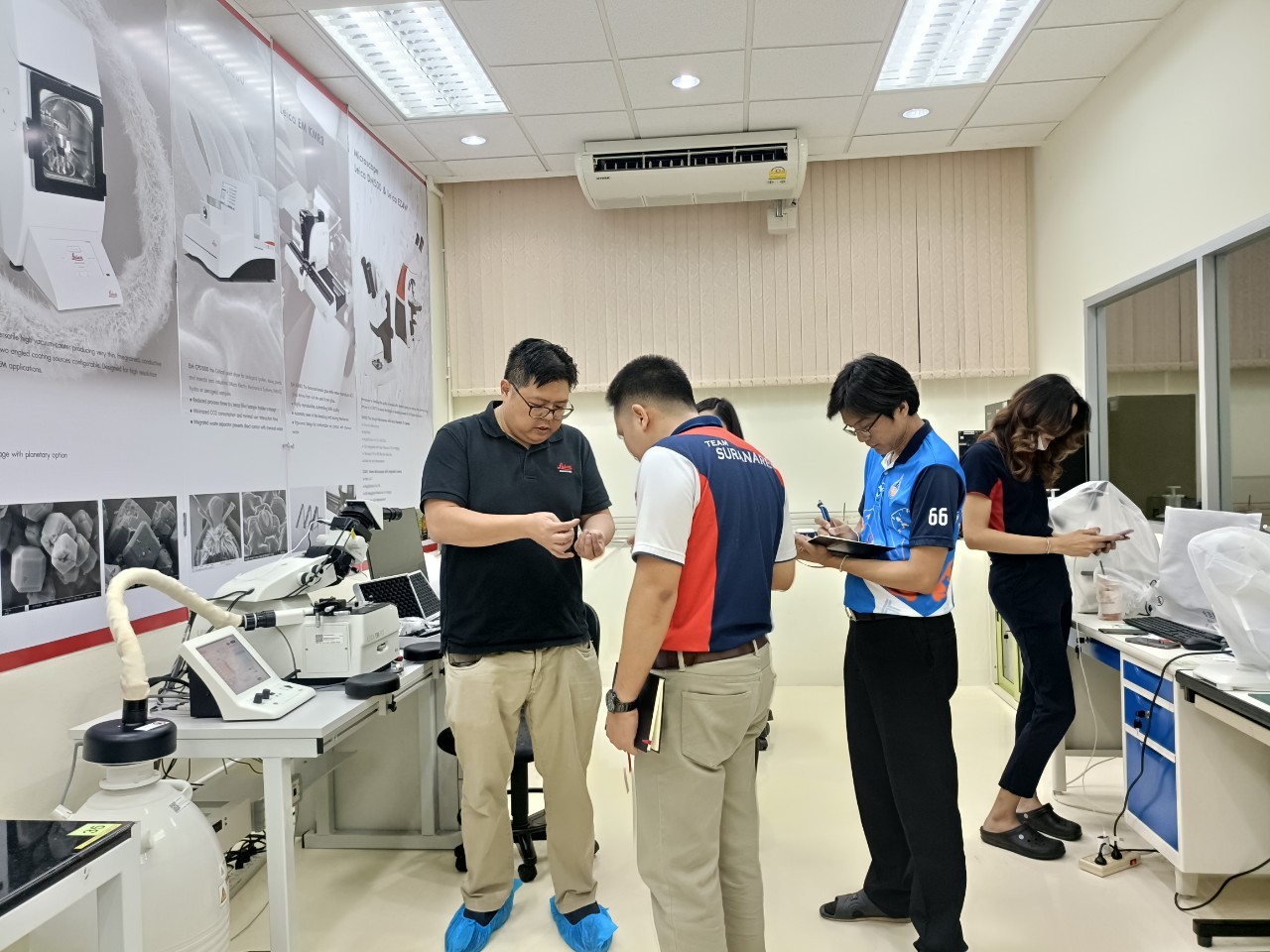 งานวิเคราะห์ด้วยกล้อวจุลทรรศน์อิเล็กตรอน ฝ่ายวิเคราะห์ด้วยเครื่องมือ ศควท. อบรมการใช้เครื่องตัดตัวอย่างแบบบางพิเศษ สำหรับงาน TEM/SEM ยี่ห้อ LEICA รุ่น EM FC7 + UC 7 โดยวิทยากรพิเศษ ดร.วิภาวี ถึงเสียบญวน กับ Dr.Adrian Boey Applications Specialist Micoscope ผู้เชี่ยวชาญการใช้เครื่องตัดตัวอย่างแบบบางพิเศษ จากบริษัท Leica Microsystems (SEA) Pte., Ltd. ประเทศ Singapore ระหว่างวันที่ 19-21 พฤศจิกายน 2567 ณ ห้องปฏิบัติการวิเคราะห์ด้วยกล้องจุลทรรศน์อิเล็กตรอน อาคารเครื่องมือ 10 มหาวิทยาลัยเทคโนโลยีสุรนารี