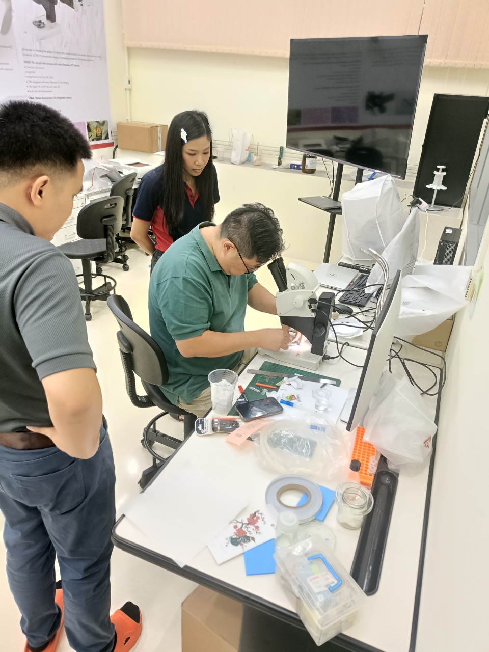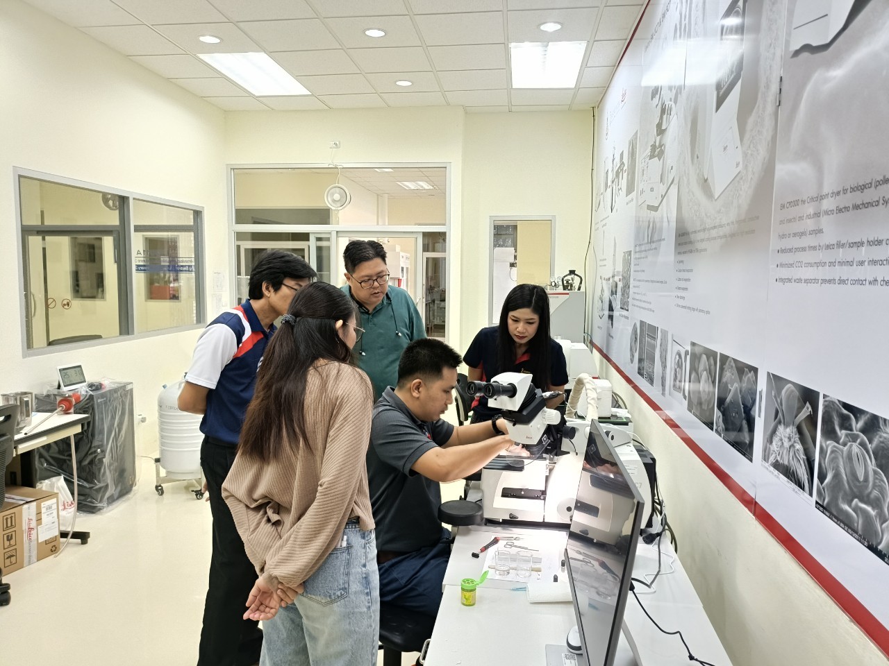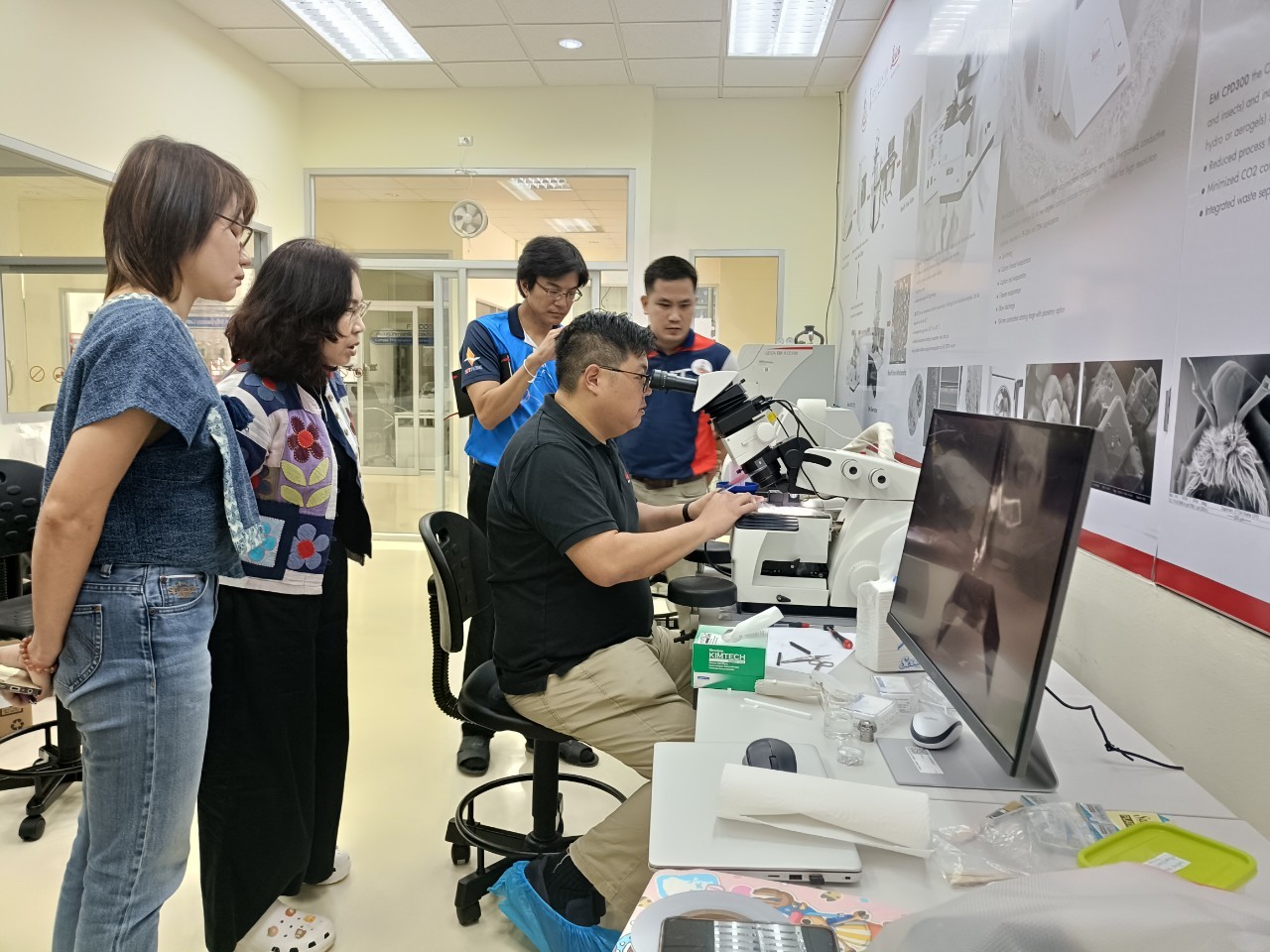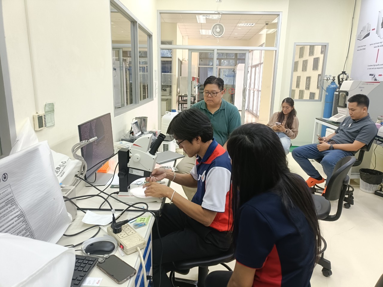 งานวิเคราะห์ด้วยกล้อวจุลทรรศน์อิเล็กตรอน ฝ่ายวิเคราะห์ด้วยเครื่องมือ ศควท. อบรมการใช้เครื่องตัดตัวอย่างแบบบางพิเศษ สำหรับงาน TEM/SEM ยี่ห้อ LEICA รุ่น EM FC7 + UC 7 โดยวิทยากรพิเศษ ดร.วิภาวี ถึงเสียบญวน กับ Dr.Adrian Boey Applications Specialist Micoscope ผู้เชี่ยวชาญการใช้เครื่องตัดตัวอย่างแบบบางพิเศษ จากบริษัท Leica Microsystems (SEA) Pte., Ltd. ประเทศ Singapore ระหว่างวันที่ 19-21 พฤศจิกายน 2567 ณ ห้องปฏิบัติการวิเคราะห์ด้วยกล้องจุลทรรศน์อิเล็กตรอน อาคารเครื่องมือ 10 มหาวิทยาลัยเทคโนโลยีสุรนารี