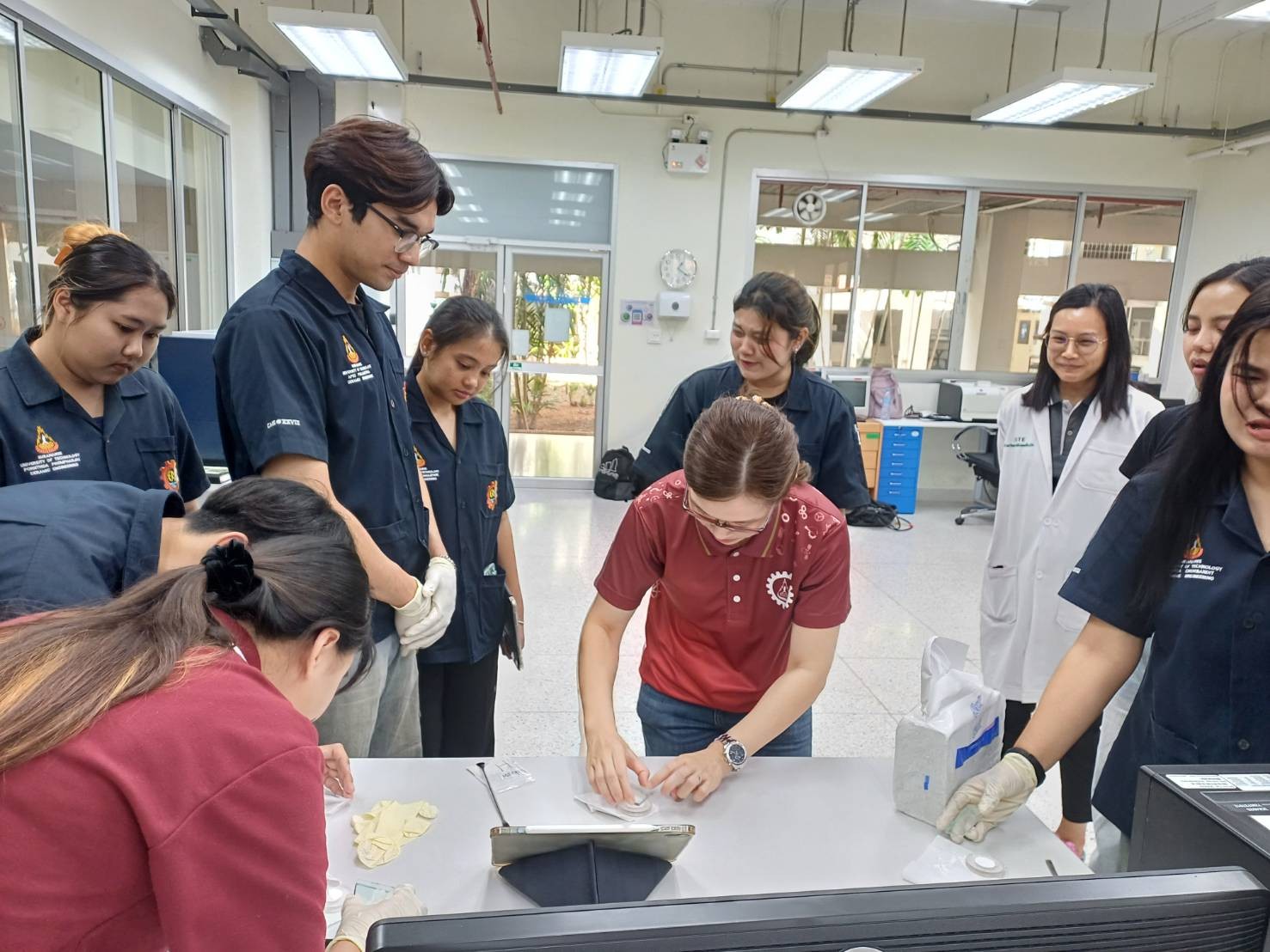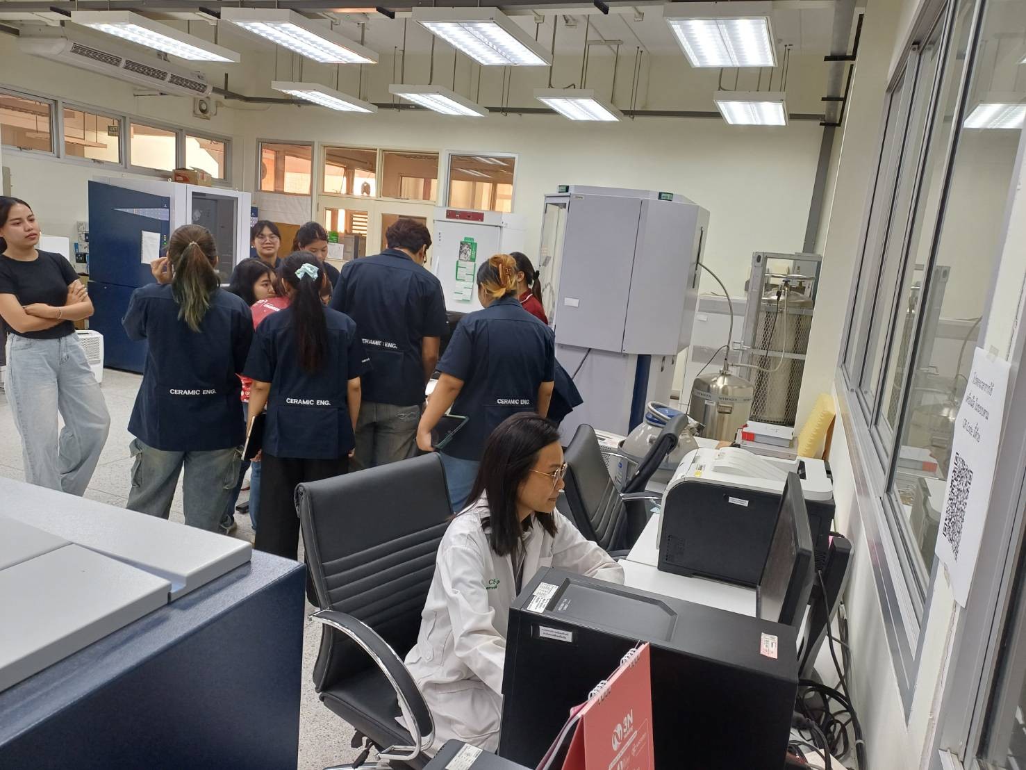 นำโดย รองศาสตราจารย์ ดร.จิรัชญา อายะวรรณา อาจารย์ผู้สอน/หัวหน้าสาขาวิชาวิศวกรรมเซรามิก และคุณยูถิกา สร้อยระย้า นักวิทยาศาสตร์ประจำงานวิเคราะห์ทางเคมีและชีวเคมี ได้บรรยายให้ความรู้และ Workshop เกี่ยวกับการใช้เครื่องมือวิทยาศาสตร์ขั้นสูง