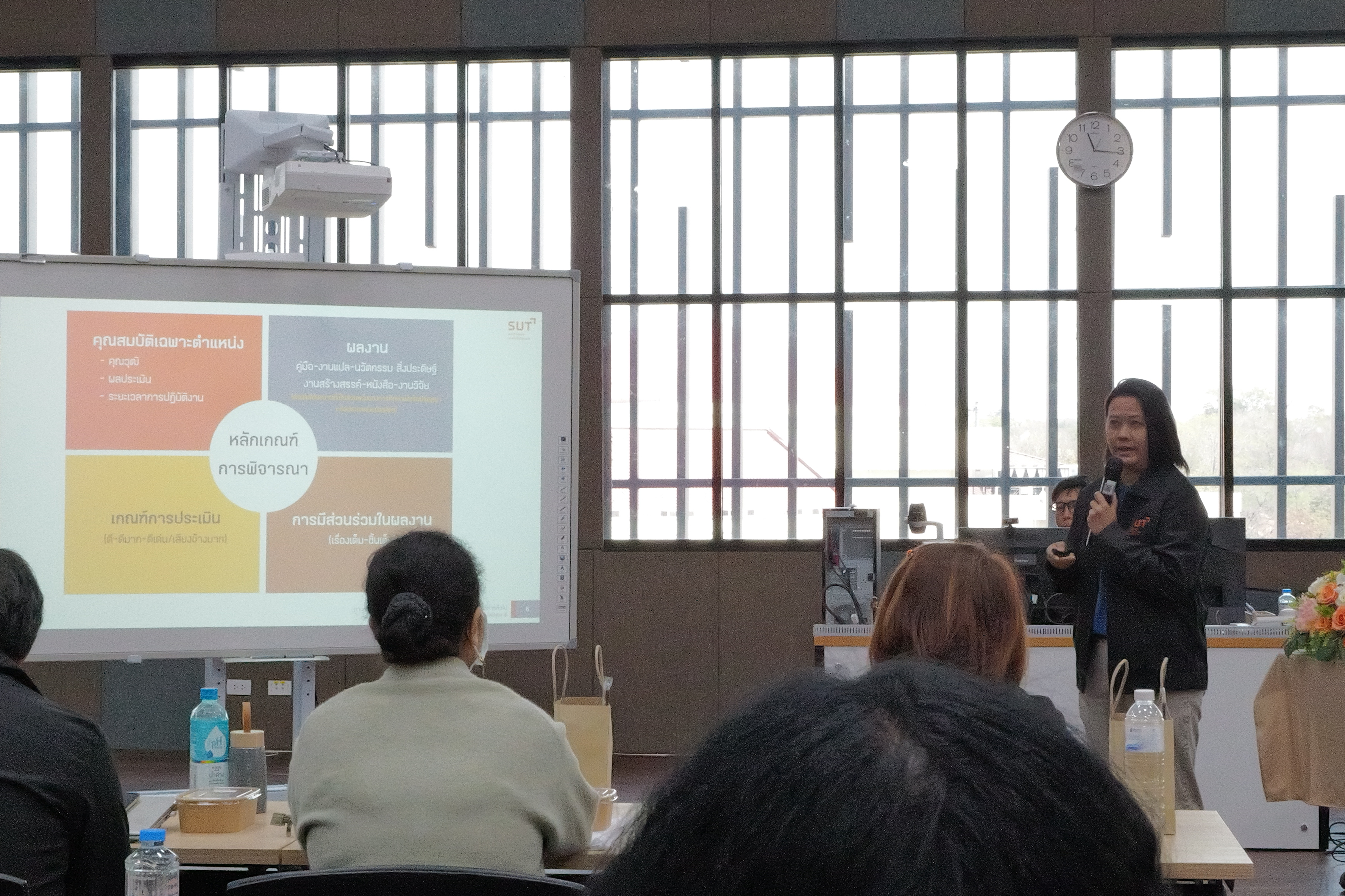 4. ความก้าวหน้าในอาชีพ โดยได้รับเกียรติวิทยากร จากส่วนทรัพยากรบุคคล มทส. มาให้ข้อมูลและแนะแนวทางการนำไปสู่การขอตำแหน่งความก้าวหน้าในอาชีพ