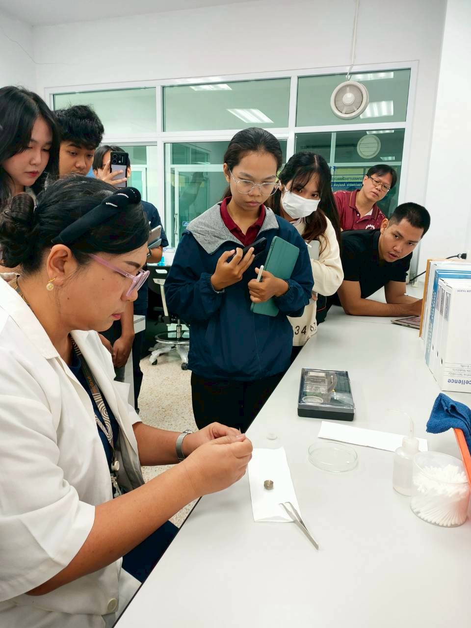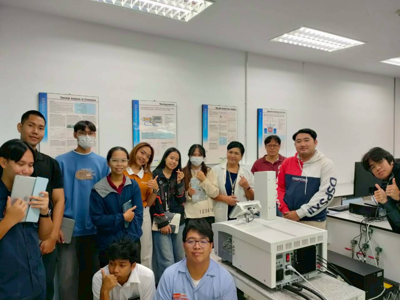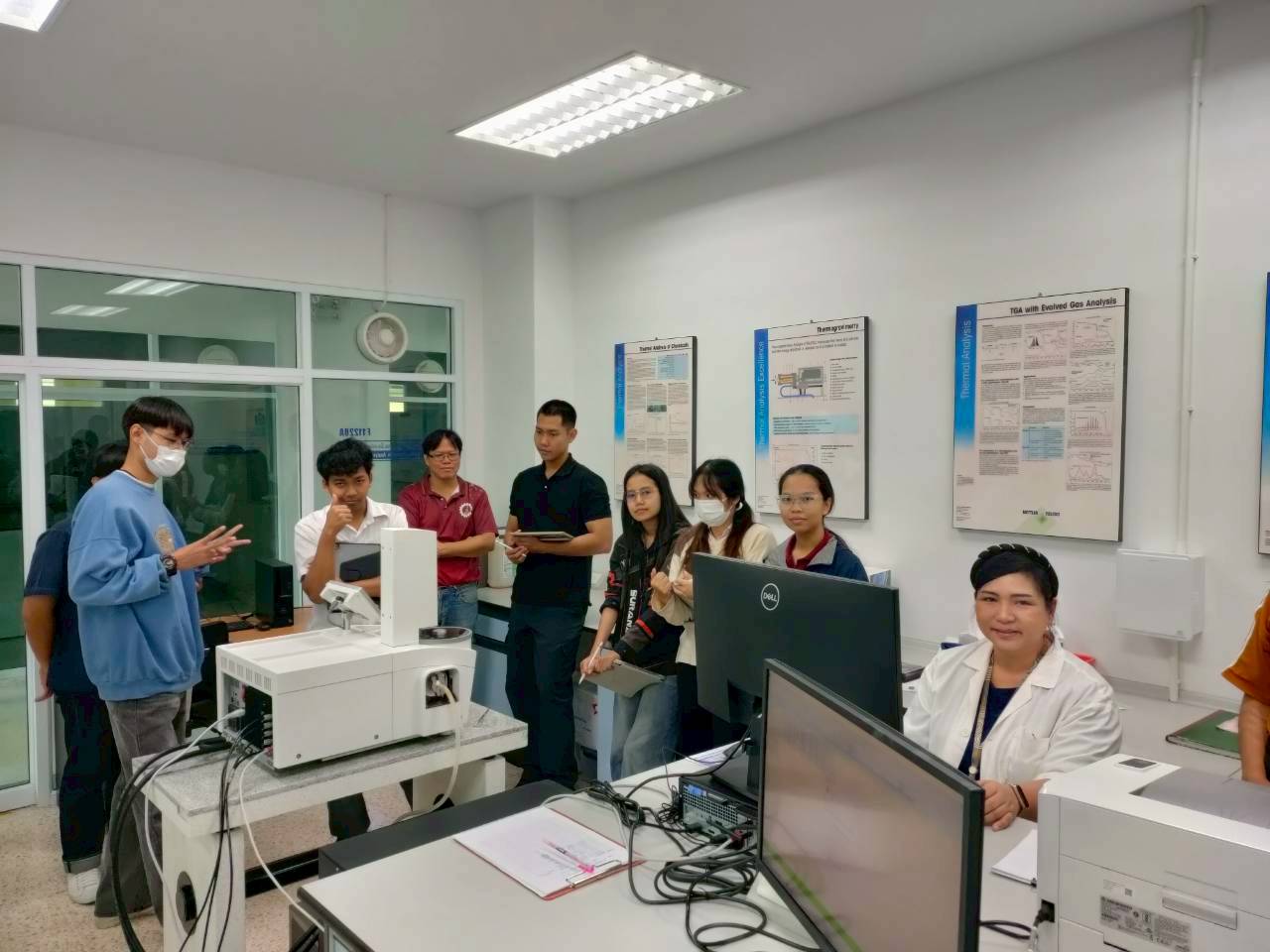 โดยมี คุณวิมลพร โสภณ หัวหน้างานทดสอบทางกายภาพ เป็นวิทยากรให้ความรู้เครื่องวิเคราะห์ Themogravimetric Analysis (TGA/DSC3+) เพื่อมใช้ในการทำงานวิจัย การเรียนการสอนเป็นไปด้วยความเรียบร้อย